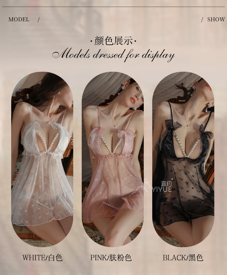 Sexy Slip Nightdress Pearl Open Crotch Underwear